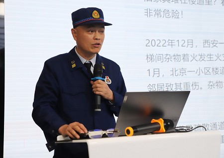 林隊長(cháng)按照“防消結合,預防為主”的原則,面向在場(chǎng)人員就近年來(lái)全國重大火災事故案例,以及日常消防隱患排查、火災報警、逃生自救、撲救火災等消防常識進(jìn)行了講解,并對案例發(fā)生的原因進(jìn)行了詳細地剖析,切實(shí)加強安全防范意識,提高自防自救能力。