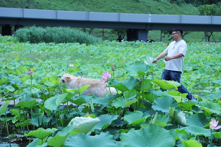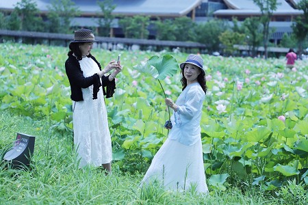 沿著(zhù)蜿蜒的木棧道,穿梭于荷叢,游人伸手可觸蓮葉上的水珠,體驗“誤入藕花深處”的妙趣,仿佛置身“荷間仙境”,或身著(zhù)漢服精美自拍或捕捉荷花與恢弘大氣的國際會(huì )議中心同框的經(jīng)典畫(huà)面,孩童在田埂邊賞花戲蜻蜓,卻與野鴨、水鳥(niǎo)不期而遇,笑聲與荷香交織,定格“詩(shī)畫(huà)江南”的美好瞬間。