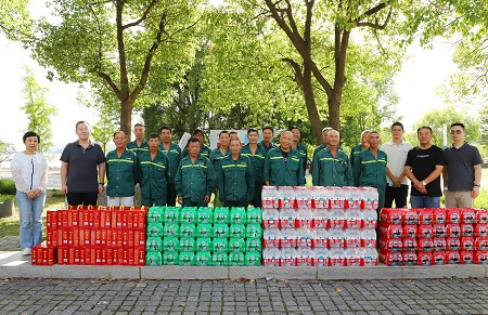 高溫季節極端天氣和自然災害高發(fā),養護、施工任務(wù)重,對綠地養護、項目施工作業(yè)帶來(lái)新的難度和挑戰。副總裁謝春維向養護員工們送上關(guān)切問(wèn)候,面對一張張熟悉、親切的面孔,謝總感謝大家的無(wú)私奉獻和辛勤付出,希望大家做好高溫天氣應急舉措,保障人身安全,發(fā)揮藍海精神,確保生產(chǎn)安全、有序作業(yè)。