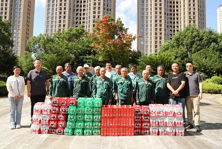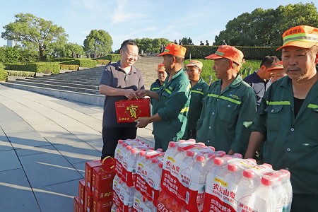 近日,甬城溫度不斷攀升,藍海綠業(yè)一線(xiàn)員工堅守奮戰,用辛勤的汗水守護綠蔭、建設城市。7月1日上午,藍海綠業(yè)集團董事長(cháng)宋極率慰問(wèn)組來(lái)到公司各養護項目現場(chǎng),看望并慰問(wèn)不畏高溫酷暑,為美麗城市建設堅守一線(xiàn)的工人們,為他們送去關(guān)懷和防暑清涼物品。