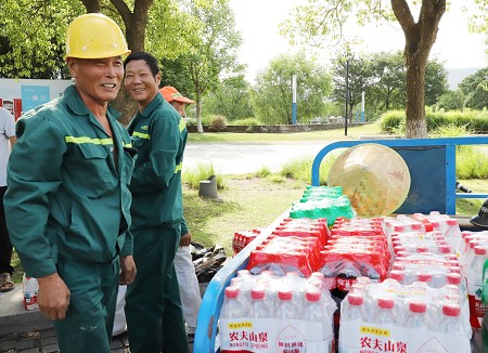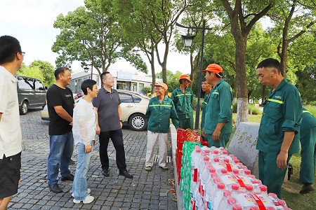 上午6點(diǎn)半,藍海綠業(yè)集團董事長(cháng)宋極,公司副總裁謝春維,工會(huì )主席、質(zhì)安管理中心主任錢(qián)增龍,及養護管理部、質(zhì)安技術(shù)管理中心、總裁辦及各綠地養護片區負責人組成高溫慰問(wèn)小組,先后來(lái)到院士公園、姜山獅山公園、橫溪、東錢(qián)湖陽(yáng)光水岸、生態(tài)走廊、潘火潘火等養護項目、環(huán)衛站現場(chǎng),走訪(fǎng)慰問(wèn)高溫作業(yè)的一線(xiàn)員工。